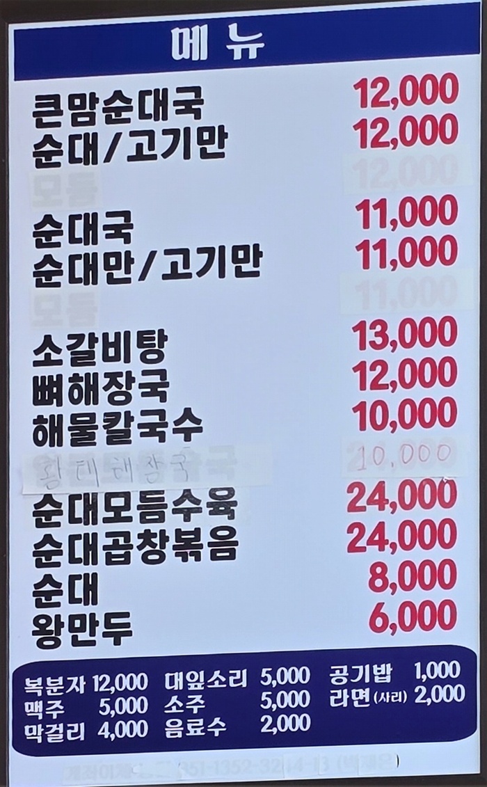 👉사이드류:순대, 왕만두, 라면 등 다양한 사이드 메뉴를 제공합니다.