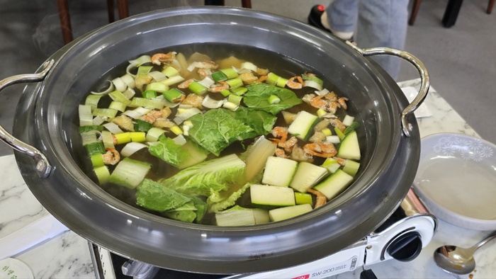 며칠 전 친구들과 함께 인천 영종도 무의도를 구경하고 강화로 드라이브를 갔는데 강화 동검도에도 큰 맘할머니순댓국집이 생겼네요. 해물칼국수도 직접 반죽하여 싱싱한 야채와 해산물로 육수를 내어 테이블에서 직접 끓여 먹을 수 있게 하고 있네요. 우리가 주문한 것은 해물칼국수와 큰 맘순댓국이었네요.