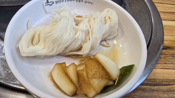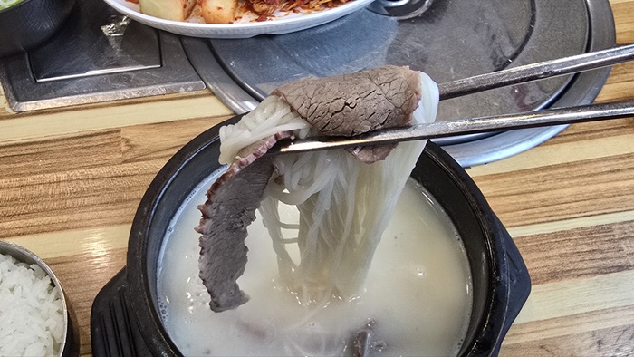 ✅넉넉한 인심: 소면사리 추가가 무료로 셀프코너에 있고 맛있는 깍두기와 김치 또한 설렁탕의 맛을 더합니다.