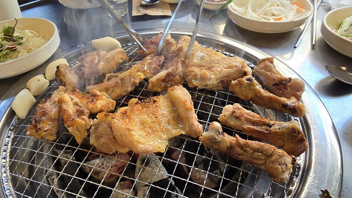 👉숯불 조리: 닭갈비를 숯불에 초벌 하여 제공하므로 은은한 불맛을 느낄 수 있습니다.