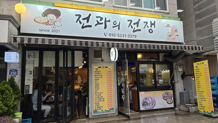 ✅맛있는 전을 만들기 위한 치열한 노력: 최고의 전을 만들기 위해 끊임없이 연구하고 노력하는 모습을 "전쟁"에 비유하여 상호에 넣은 것일 수 있습니다.