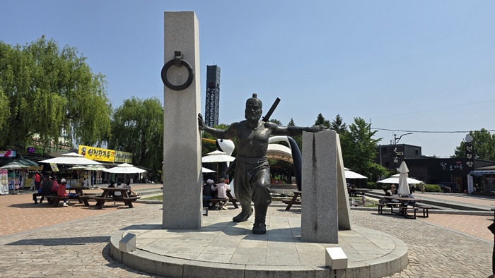 👉풍부한 역사와 전설, 그리고 인물 이야기: 임꺽정의 전설: 조선 명종 시대 의적 임꺽정의 주요 활동 무대였다는 전설은 고석정을 더욱 신비롭고 흥미롭게 만듭니다. 그가 숨어 지냈다는 석혈실(石穴室)과 변신 설화(꺽지) 등은 고석정에 생생한 이야기를 불어넣어 방문객의 상상력을 자극합니다. 입구의 임꺽정 동상은 그 상징성을 더합니다.