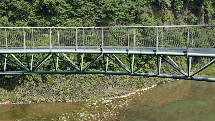 👉절벽 위를 걷는 듯한 경험: 길 대부분이 강물 위 또는 절벽 중간에 설치된 잔도(데크길, 다리)로 되어 있어, 마치 강 위를 걷거나 절벽에 매달려 걷는 듯한 짜릿한 스릴을 느낄 수 있습니다. 특히 투명 유리 구간이나 흔들 다리 구간은 더욱 흥미를 더합니다.