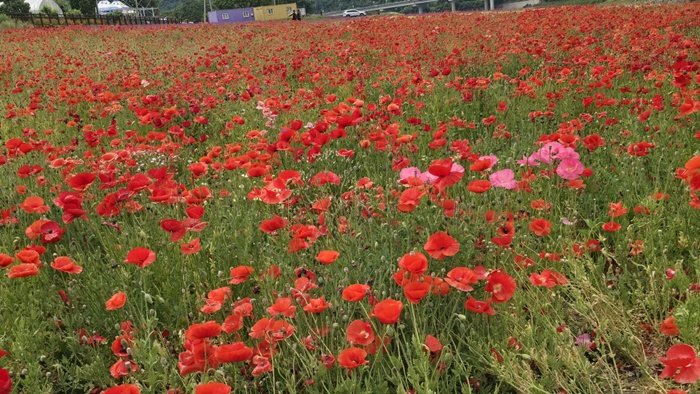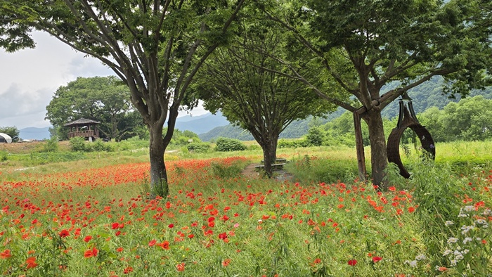 👉초여름 (6월): 양귀비, 안개초, 수레국화, 끈끈이대나물 등이 어우러져 무지개처럼 다채로운 색감의 꽃밭을 이룹니다. 현재 시점(6월 중순)에는 양귀비가 절정을 이루고 있을 것으로 예상됩니다.