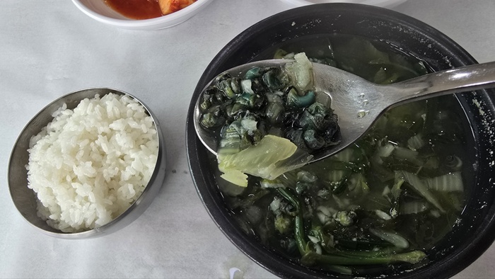 ✅푸짐한 건더기: 올갱이 해장국 안에 휘저으면 올갱이가 제법 많이 들어있어 씹는 맛이 좋고, 아욱, 부추 등 다양한 채소와 함께 끓여 영양도 풍부합니다.