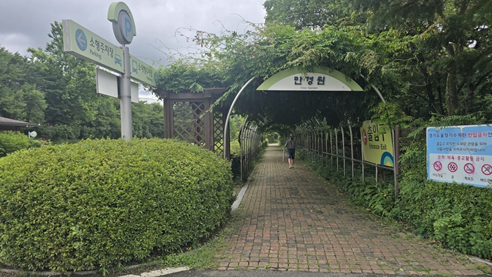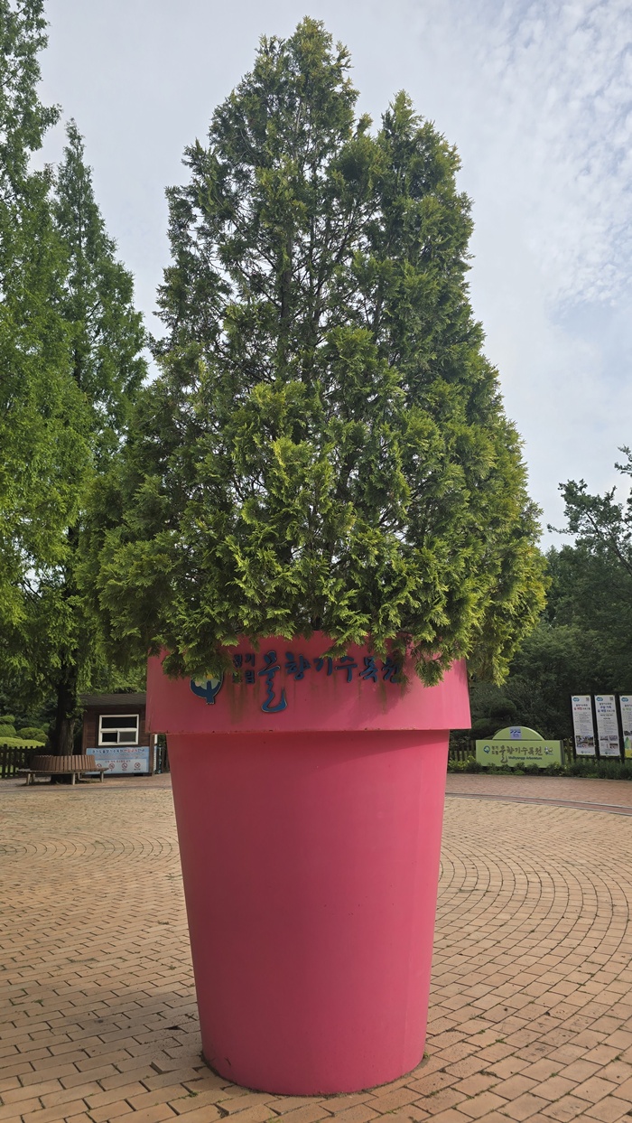 많은 비가 내리고 잠시 소강상태가 되어 친구와 함께 오산 물향기 수목원으로 향해 갔네요. 이번 8월부터 입장료도 없어지고 주차비도 조금 더 저렴해지고 겸사겸사 갔는데 매미소리가 정겨운건지 시끄러운 것인지 열심히 울고 있어요. 날씨는 후덥지근한데 응달로 들어가면 그래도 시원한 기운을 느끼게 되네요. 다니다 보니 목이 말라 물을 마시려니 물컵을 지니고 다녀야 해요. 환경문제로 인해 1회용 물컵을 두지 않았네요.
