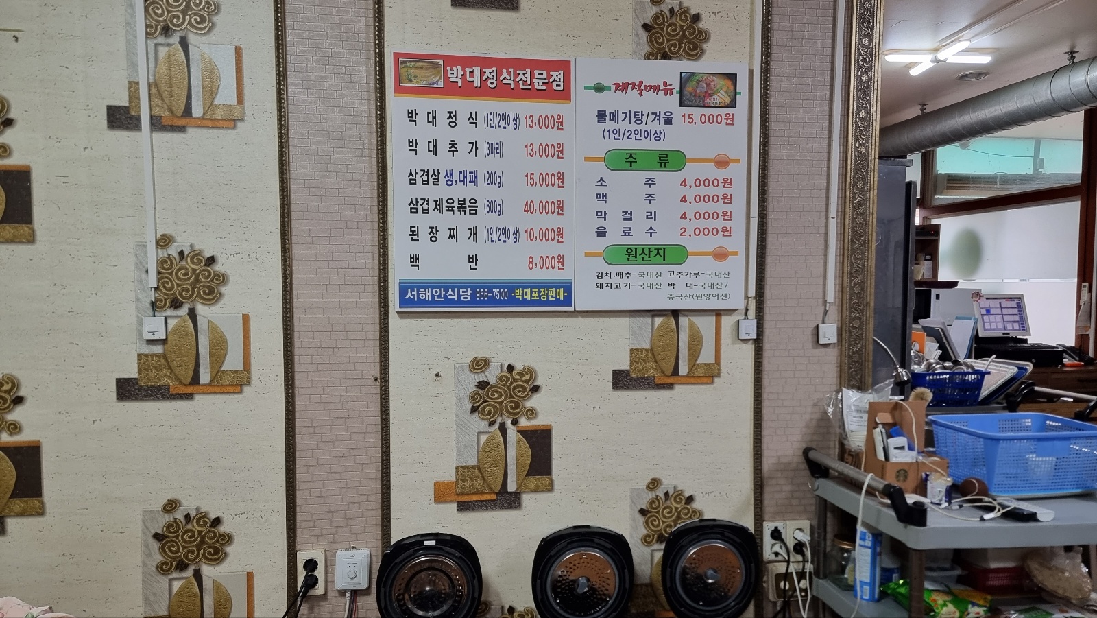 박대정식 전문점 차림표입니다.