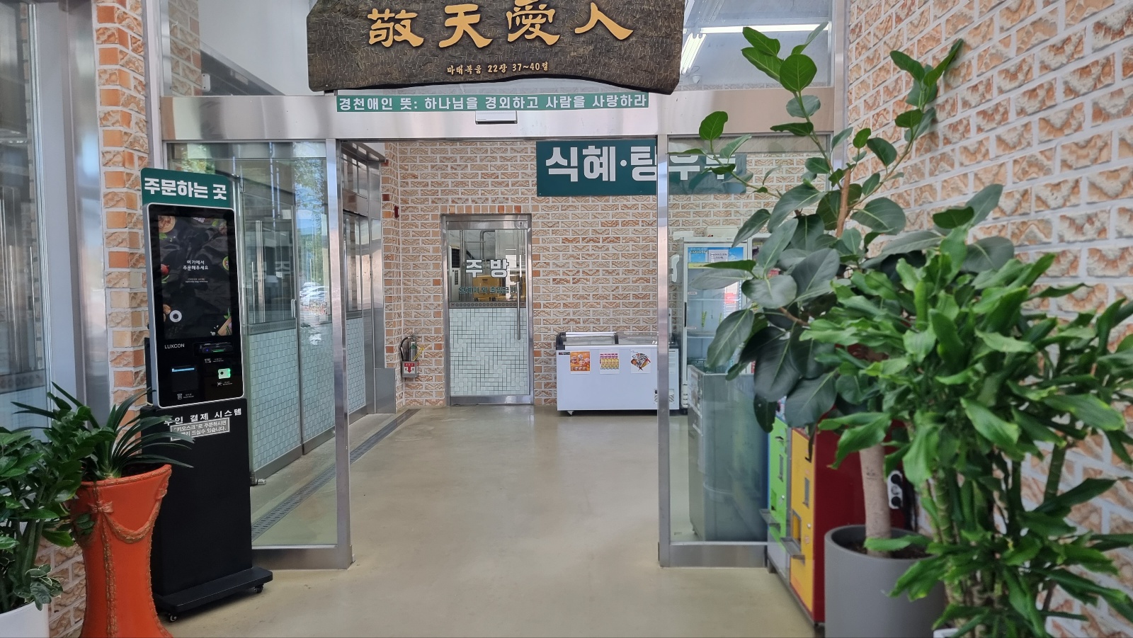 건물 앞과 식당 내부에도 있어서 좋기는 한데 어르신들만 오시면 당황하게 되지요.