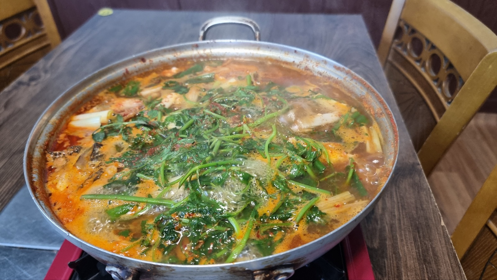 매운탕에 공깃밥 한 그릇까지 먹고 나니 배는 부른데 이슬이 생각은 머리에 남아 있어서