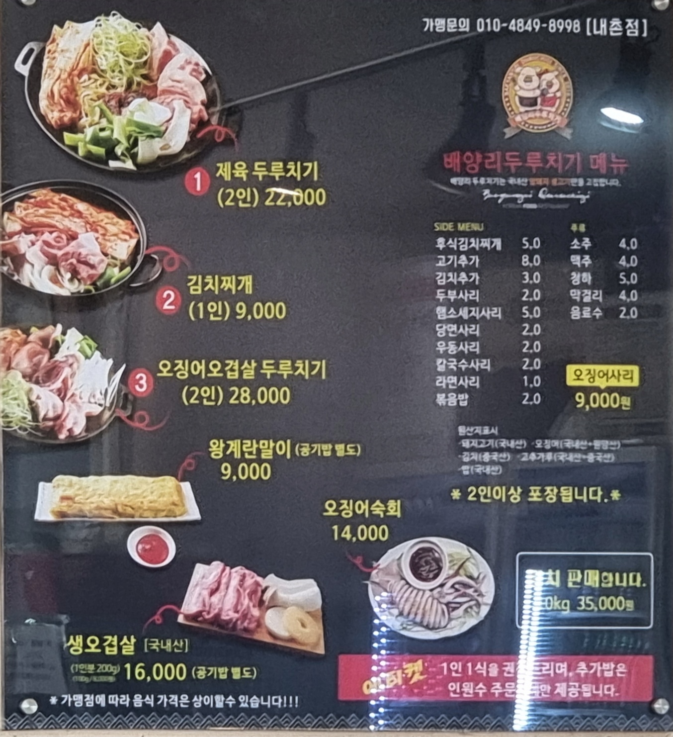 식당 안으로 들어왔으니 먹고 싶은 김치두루치기를 주문해야겠지요.