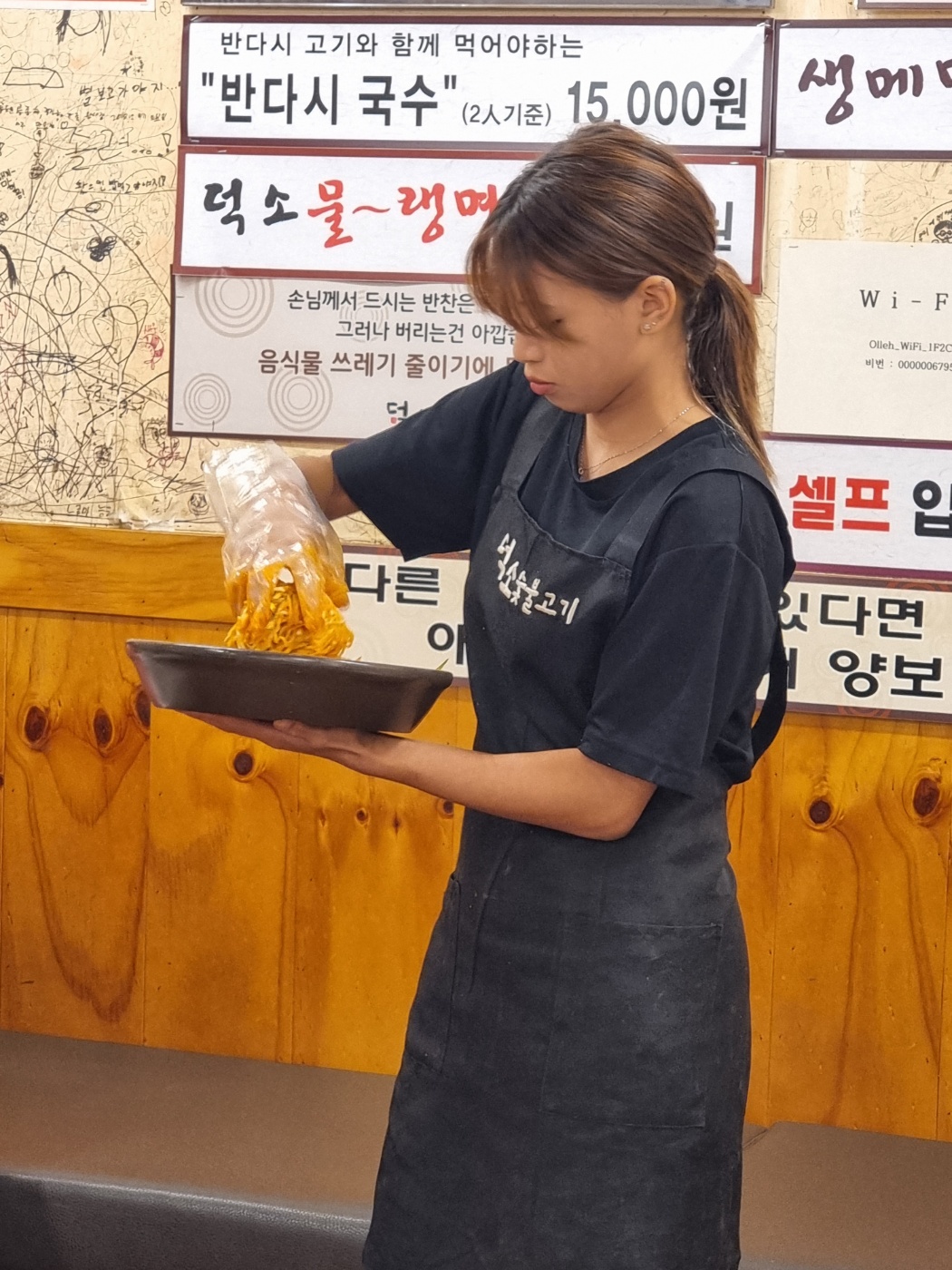 반다시국수를 직원분이 손님이 보는 앞에서 비벼주는 퍼포먼스도 있어요.