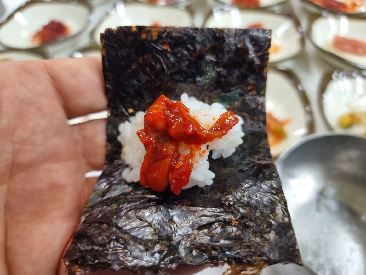 젓갈백반정식이 떡 벌어지게 한상이 차려졌는데 젓갈의 고장답게 젓갈이 12가지에 일반 반찬이 12가지 총 24가지가 상에 올라오니 한상 꽉 찹니다. 여러 가지 젓갈을 한상에서 맛볼 수 있는 기회지요. 호불호가 갈리는 것 같아요. 좋아하는 사람은 또 오고 싶다고 하고 그렇지 못한 경우는 안 온다고 하니 말이지요.