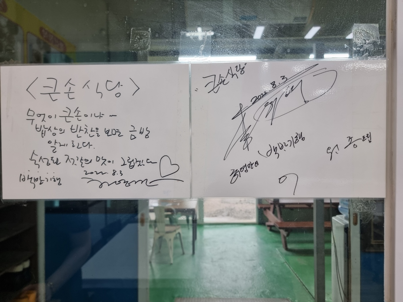 허영만의 백반기행을 촬영하고 사인도 받아놓아 붙여놓고 사진도 이렇게 플래카드로 만들어 걸어 놓았네요.
