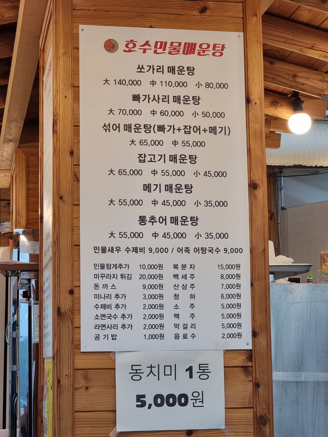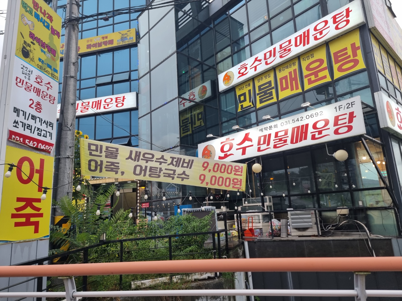 포천 고모리호수와 호수공원옆 383번 지방도로에서 바로 진입하는 곳이 주차장이라 매우 편리한 음식점인 " 민물매운탕 "