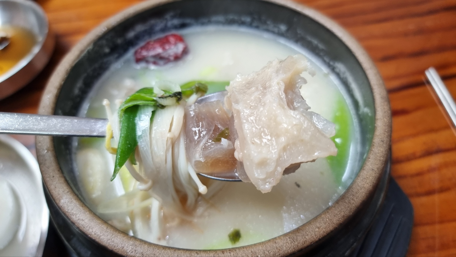 도가니탕의 먹음직스러운 모습입니다. 도가니도 생각보다 많이 있어서 좋았어요.