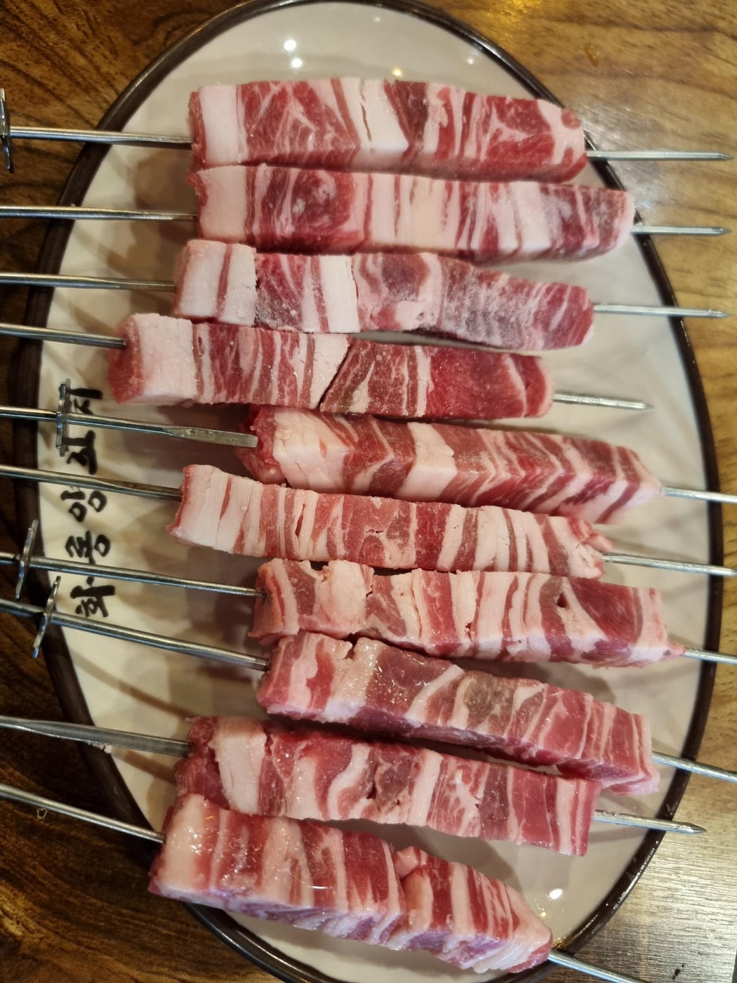 화룡양꼬치의 추천메뉴인 양념양꼬치와 생고기 양꼬치의 먹음직스러운 모습입니다.