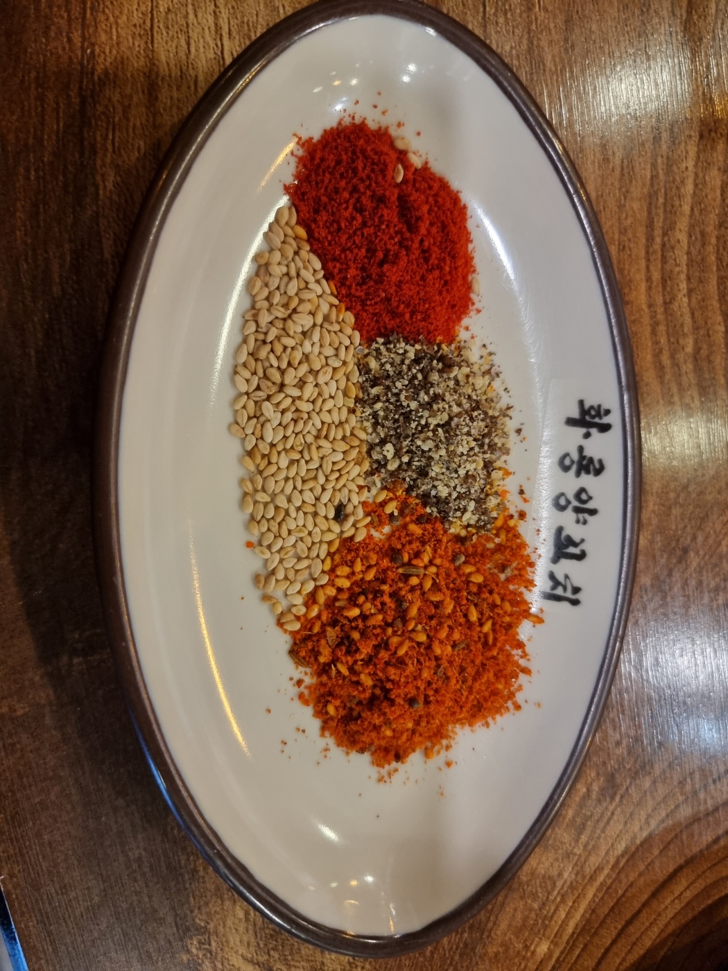 기본양념과 기본 찬입니다. 식성에 따라 기본양념에 추가를 해도 되거든요.