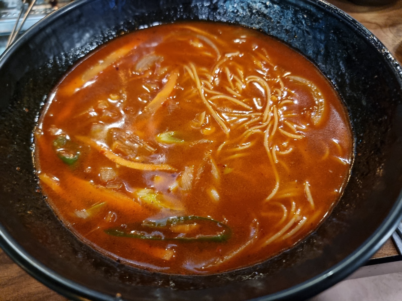 옥수수온면인데 내 입맛에는 짬뽕이 더 나은 듯싶어요. 배가 불러서 입맛을 제대로 못 느꼈나?