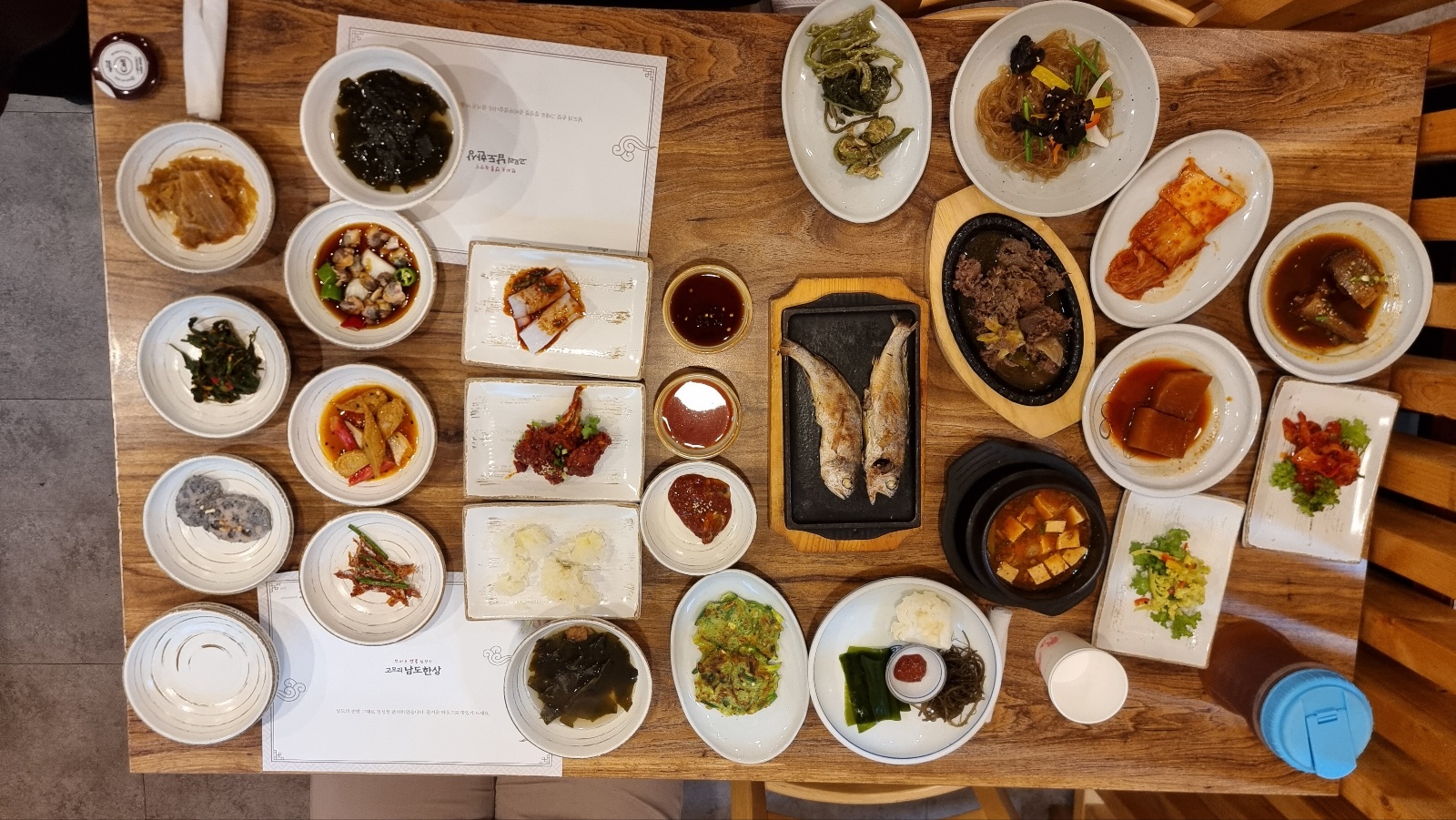 차린 남도한상 한정식이 이렇게 깔끔하게 정돈되어 입맛을 당기게 만들지요.