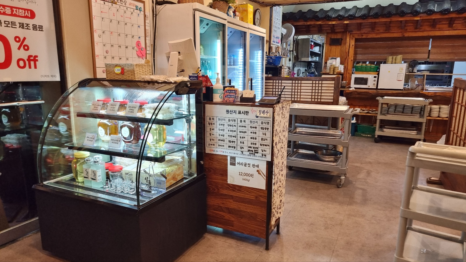 남도한상 식당내부 분위기는 깔끔하고 잘 정돈된 느낌으로 볼 때 음식도 깔끔하고 맛도 깔끔하게 느껴지리라 믿으며 음식 주문을 해야겠지요. 한편에는 수정과도 식후에 가볍게 마실 수 있게 준비되어 있네요.
