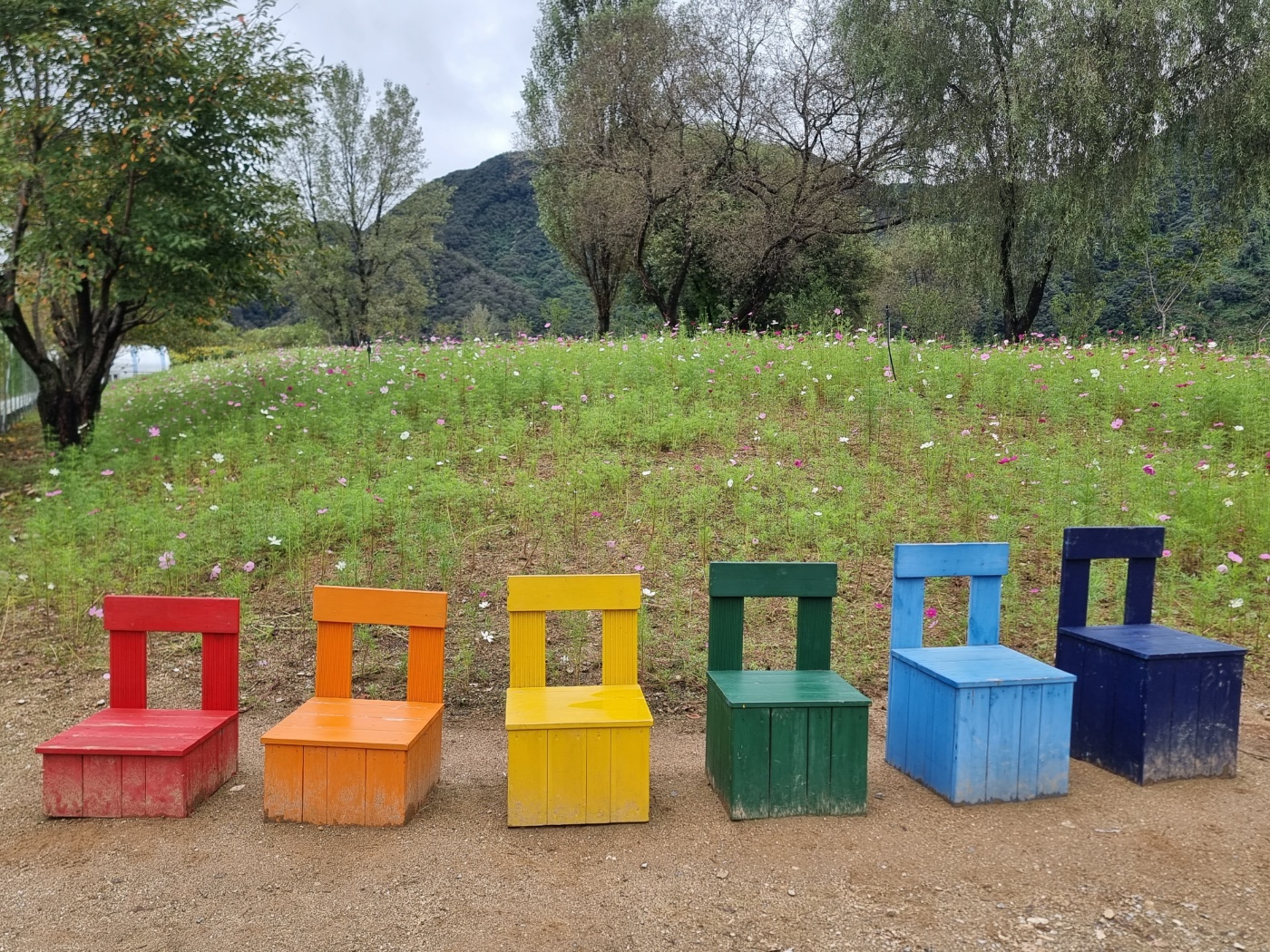 무지개 빛깔의 의자가 있었던 건 아닌지 모르겠어요. 순서상으로 보면 빨, 주, 노, 초, 파, 남, 보그너니 보라가 없는데 주최 측이 의도적으로 안 만든 건지 아니면 파손이 되어 없어진 건지 모르겠어요. 이 글을 읽는 분 중에 아시는 분중 누가 좀 알려 주세요.