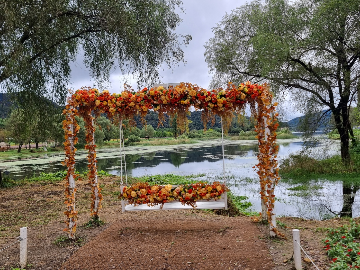포토존에서 한컷 아니 두컷도 좋으니 찍으라고 하니 그냥 가네요. 꽃도 있고 강물도 있고 산도 있고 이 얼마나 좋은데 말입니다. 그리고 천일홍으로 우리나라를 만들어 놓았는데 비가 와서 꽃송이가 무거워 고개를 떨구오 화려하게 보이지는 않아도 그냥 보면 좋아요. 변치 않는 사랑이라는 꽃말처럼 변치 않는 사랑으로 오늘은 살아야겠지요.