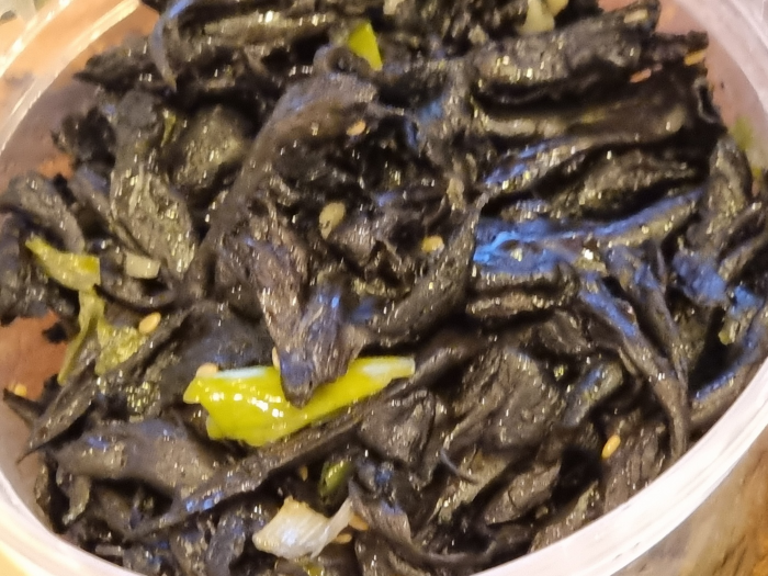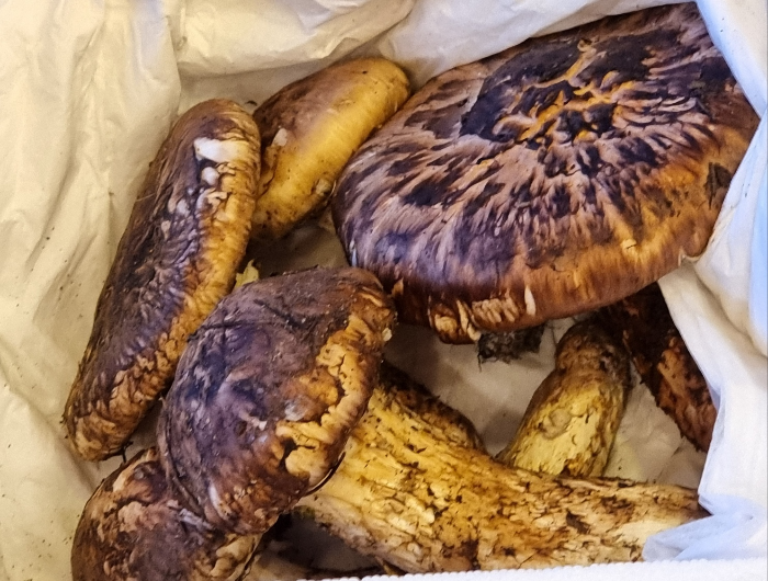 이것은 우리가 준비해 간 곰버섯무침과 송이버섯인데 올해는 송이가 워낙 귀하고 가격이 비싸서 이 송이로 대체하고 기분 좋게 마시며 즐겨 보자고.