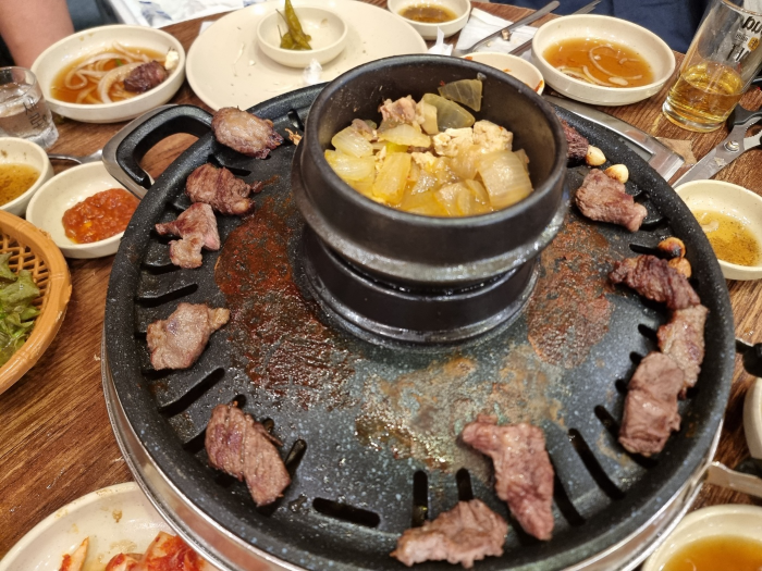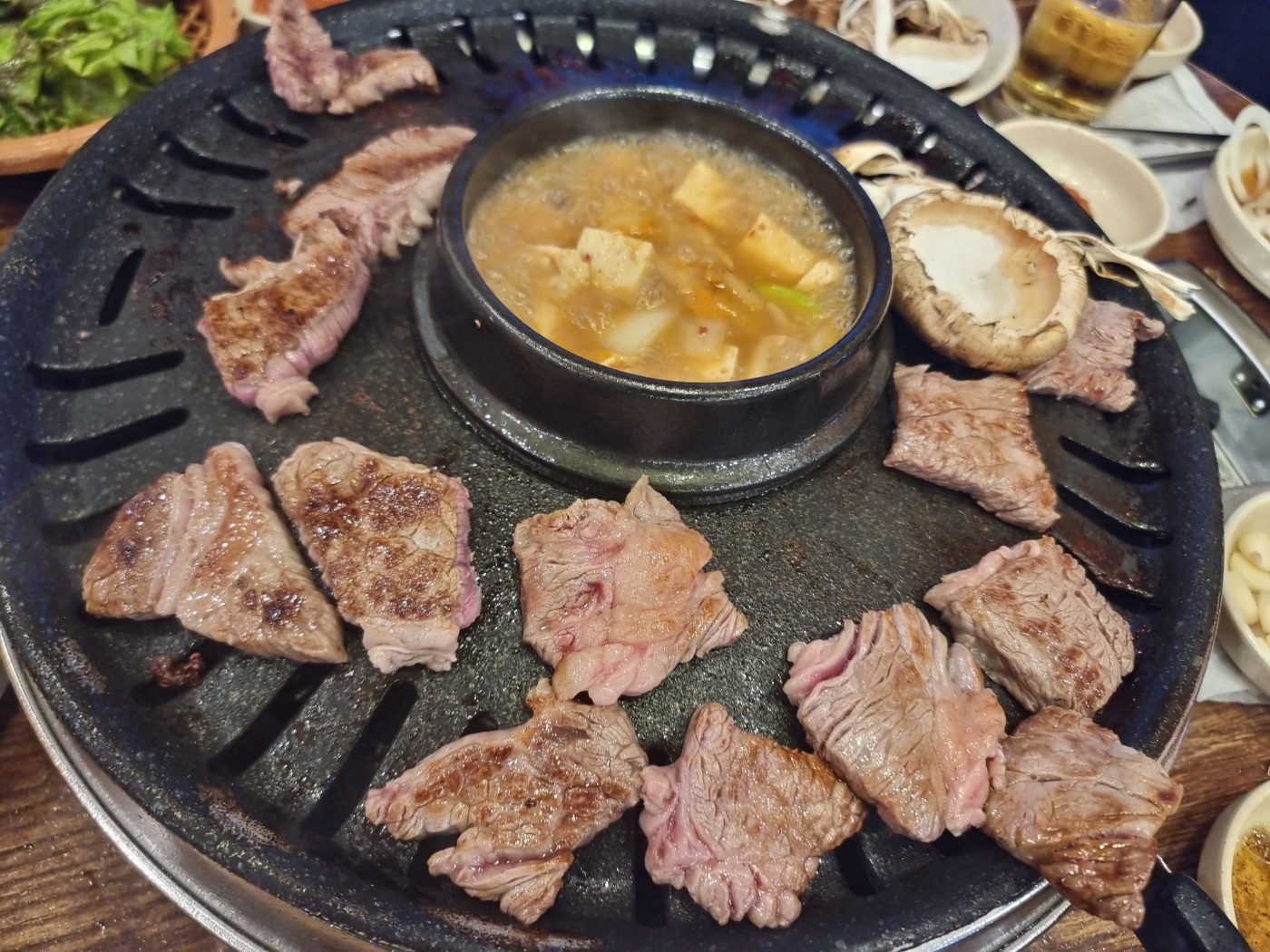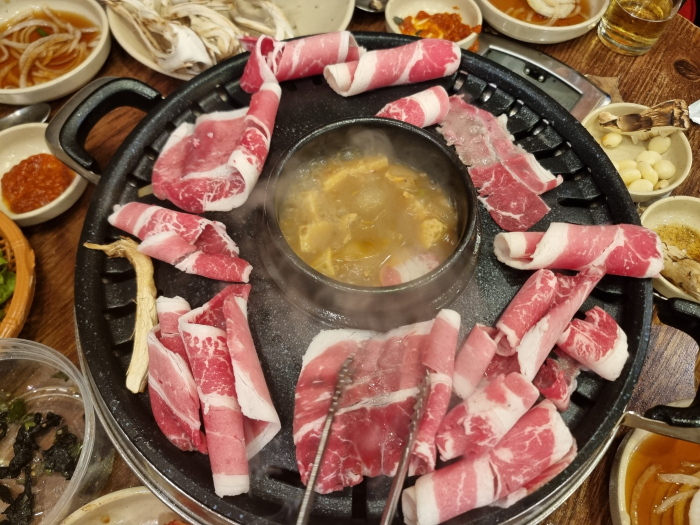 선홍빛의 소 한 마리 추가가 자연스럽게 이루어지지요. 손놀림도 바빠지고요. 먹는 템포가 쭈우욱 이어지기를 모두가 원하니 그런 거지요. 아뭍튼 기분 좋게 즐겁게 먹어요.