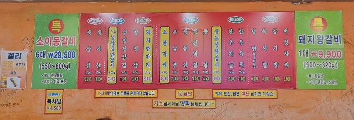 축산 정육식당 차림표입니다. 맘에 들거나 먹고 싶은 고기 콕 찍어서 맛나게 드시면 됩니다.