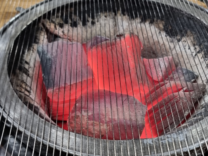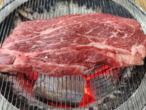벌겋게 달아오른 숯불에 올라갈 것이 이제 나오겠지요. 일단 군침은 한번 돌리고 기다려 봅니다.