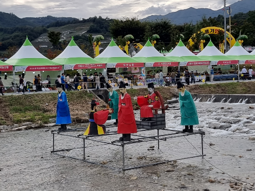 그래서 옛날에 임금닙께 진상하는 모습을 인형으로 재현해서 남원천에 설치를 해 놓았어요 방이 되면 아마도 조명이 켜져서 볼만할 건데 낮이고 또 올라와야 하는 시간이 있어서 기다리지를 못해 불 켜진 모습은 없음을 이해해 주시기 바랍니다.